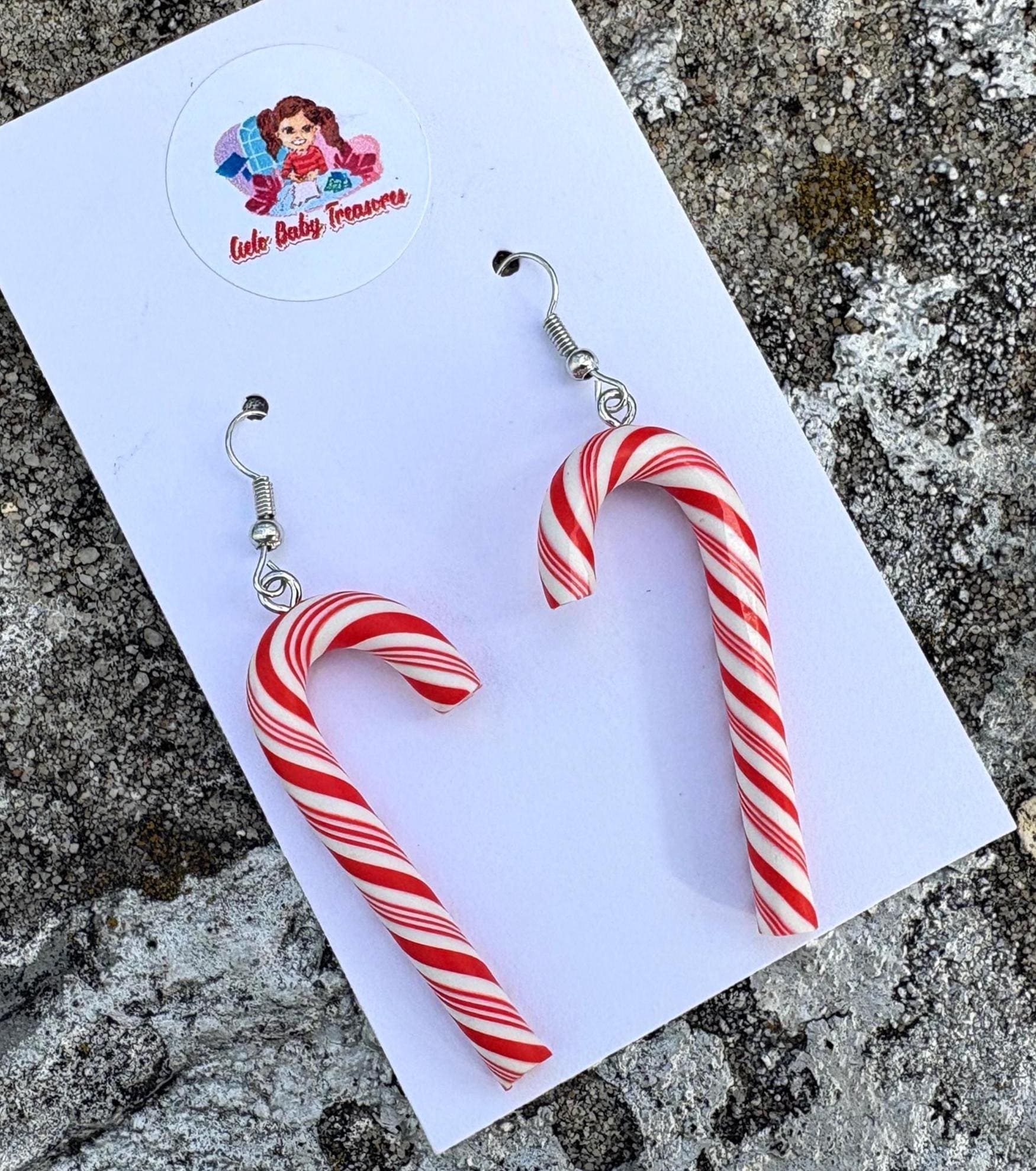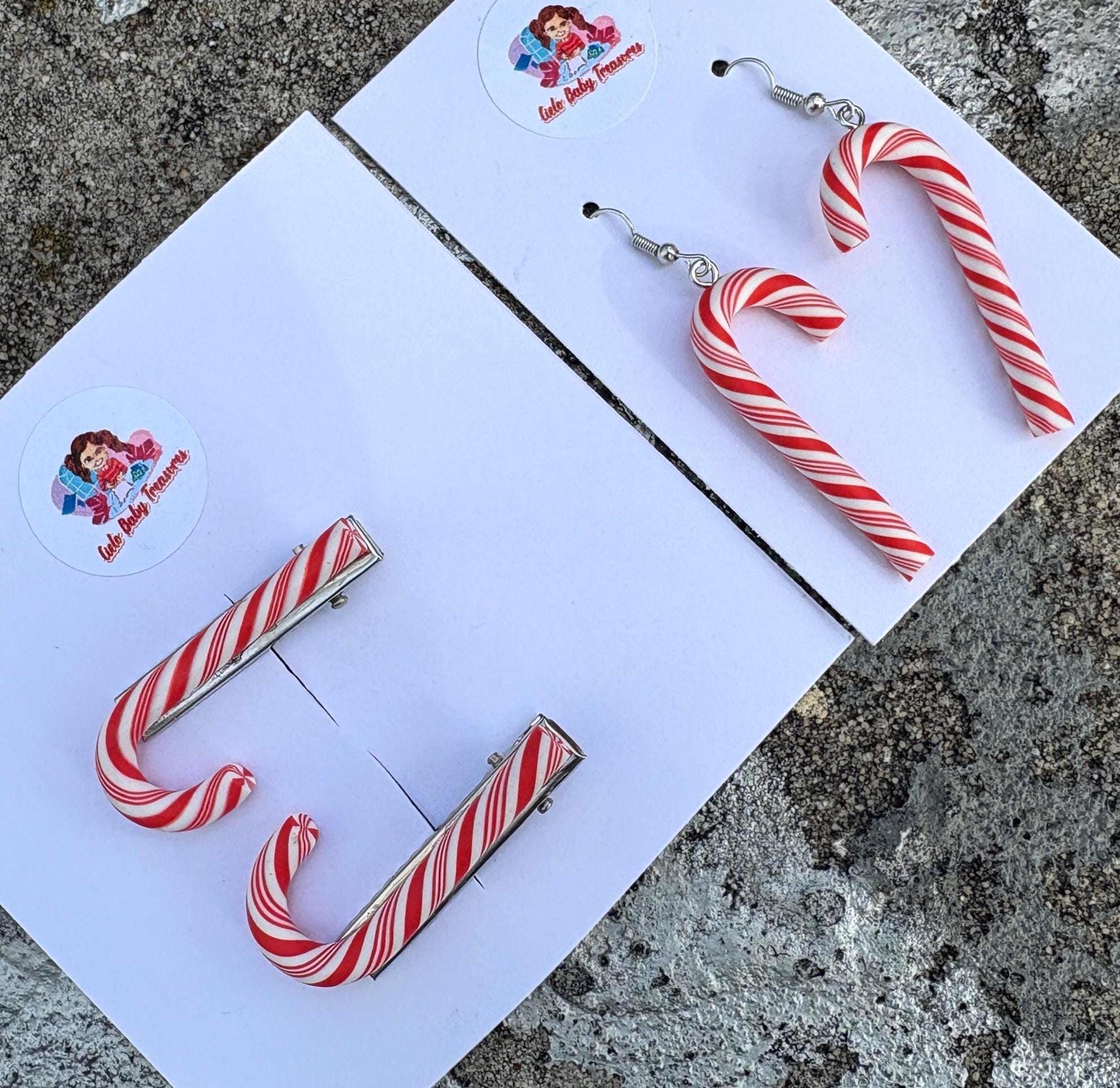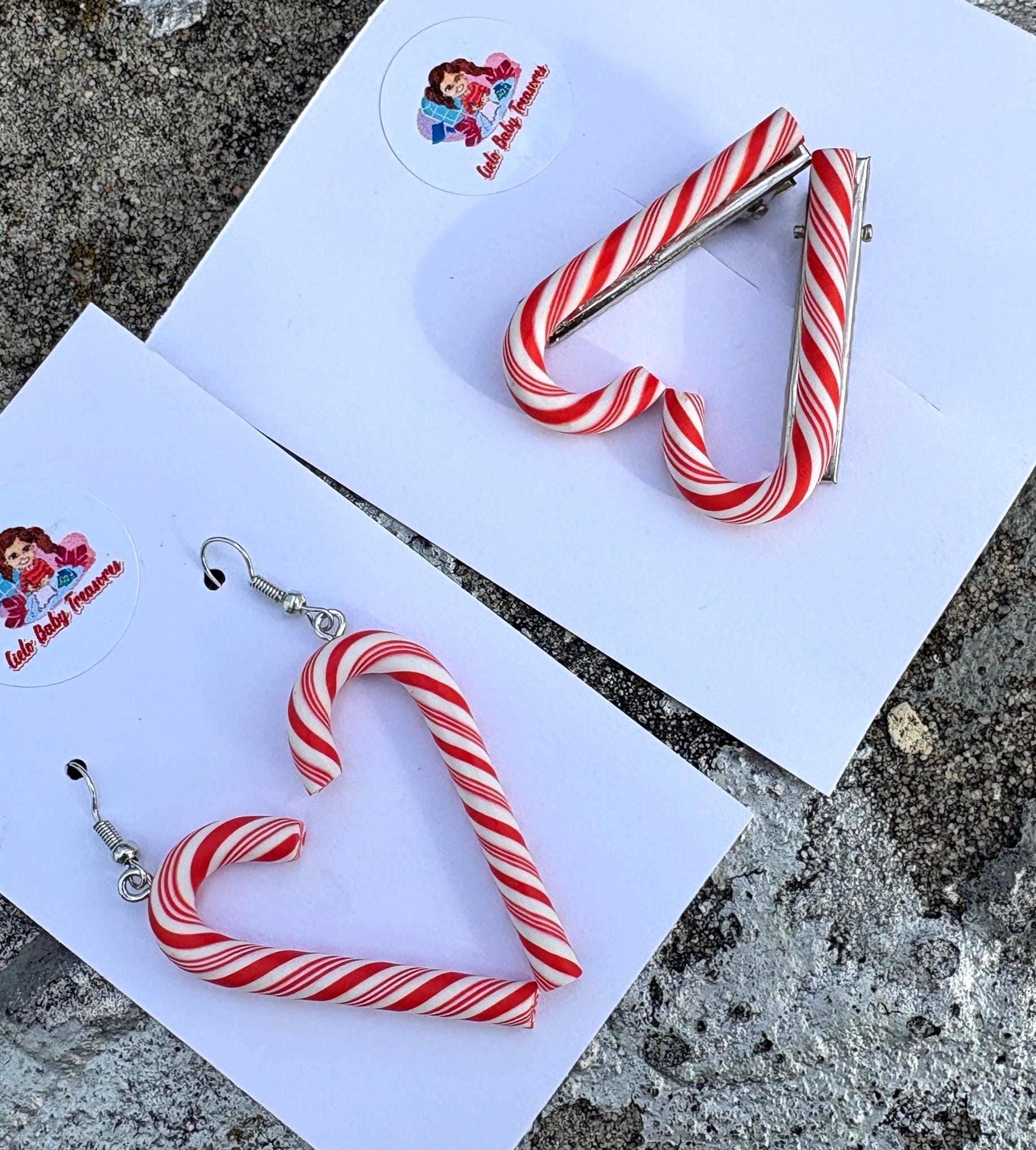 Earrings or Set of 2 clips white and red Christmas candy cane hair clips: