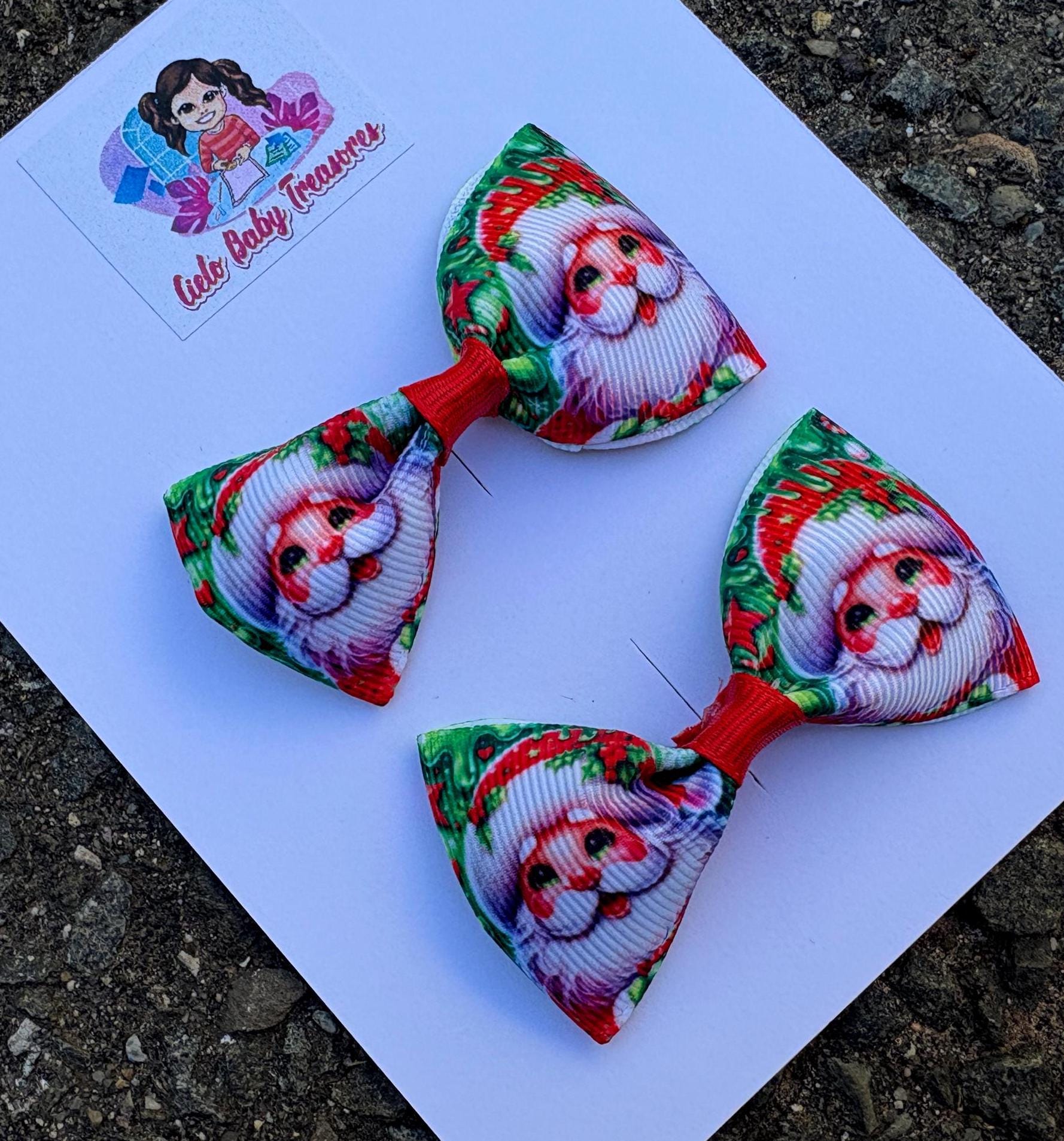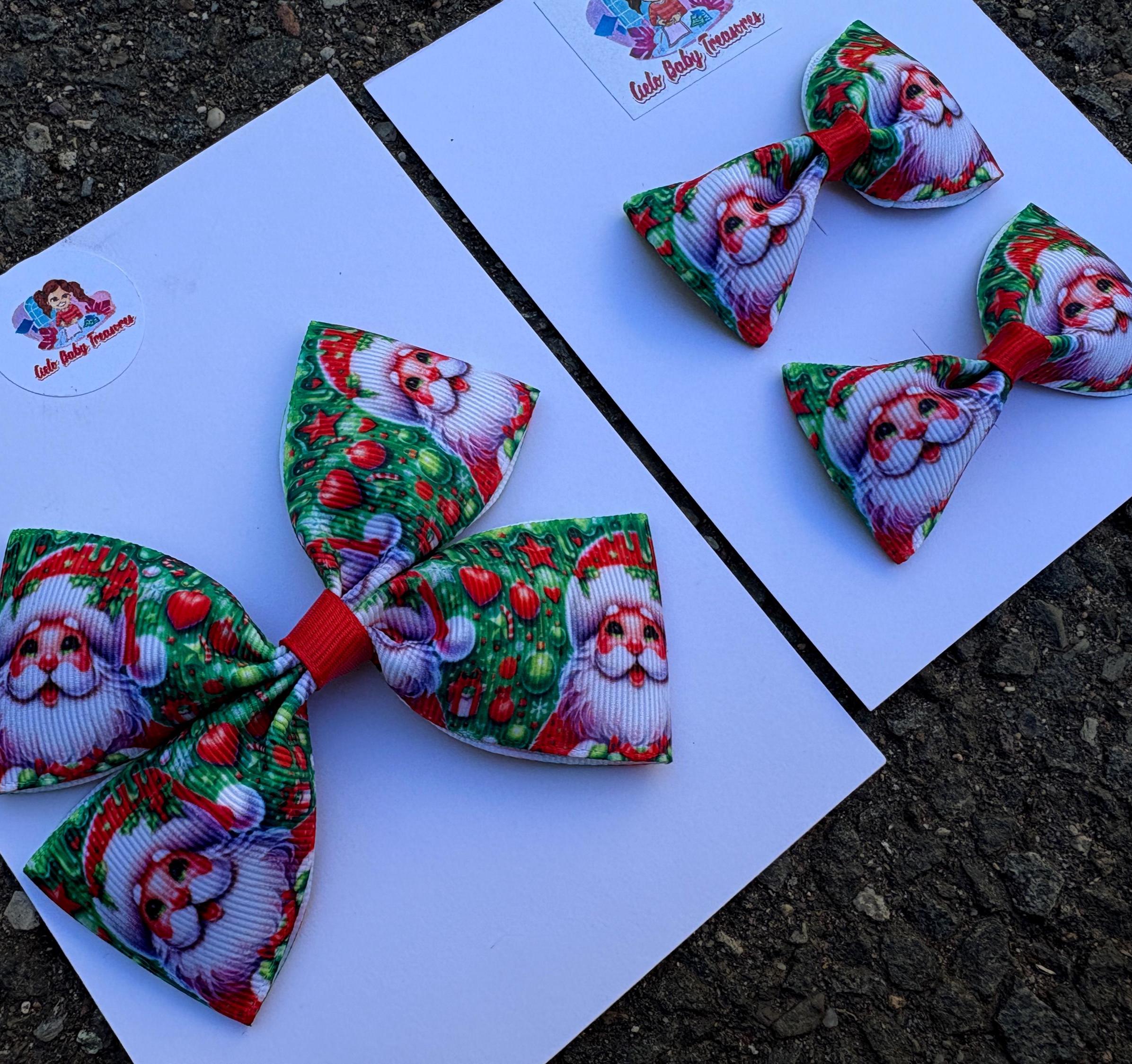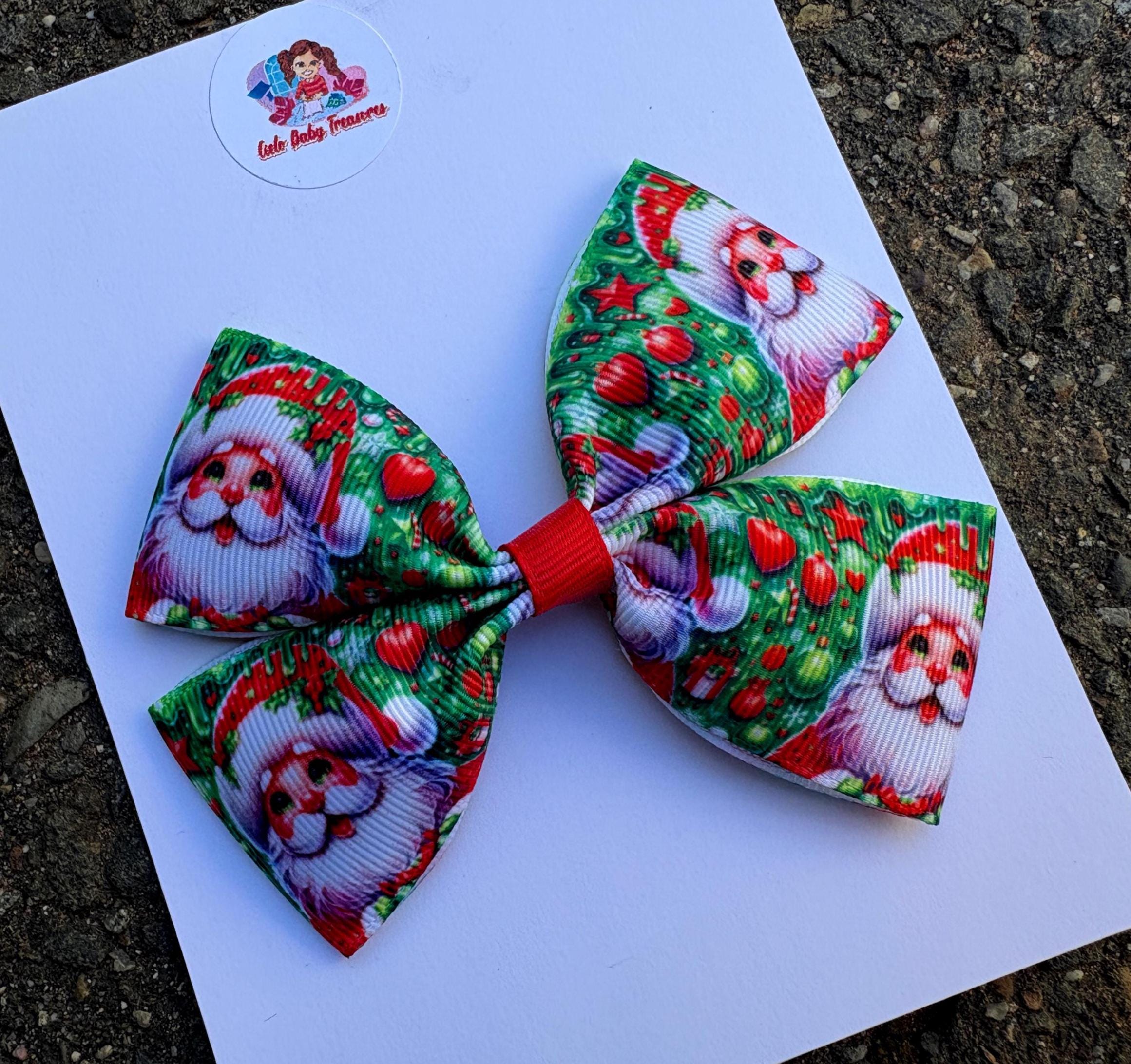 Santa Grosgrain Hair Bow -Red, White and Green Christmas Holiday Bow for Girls