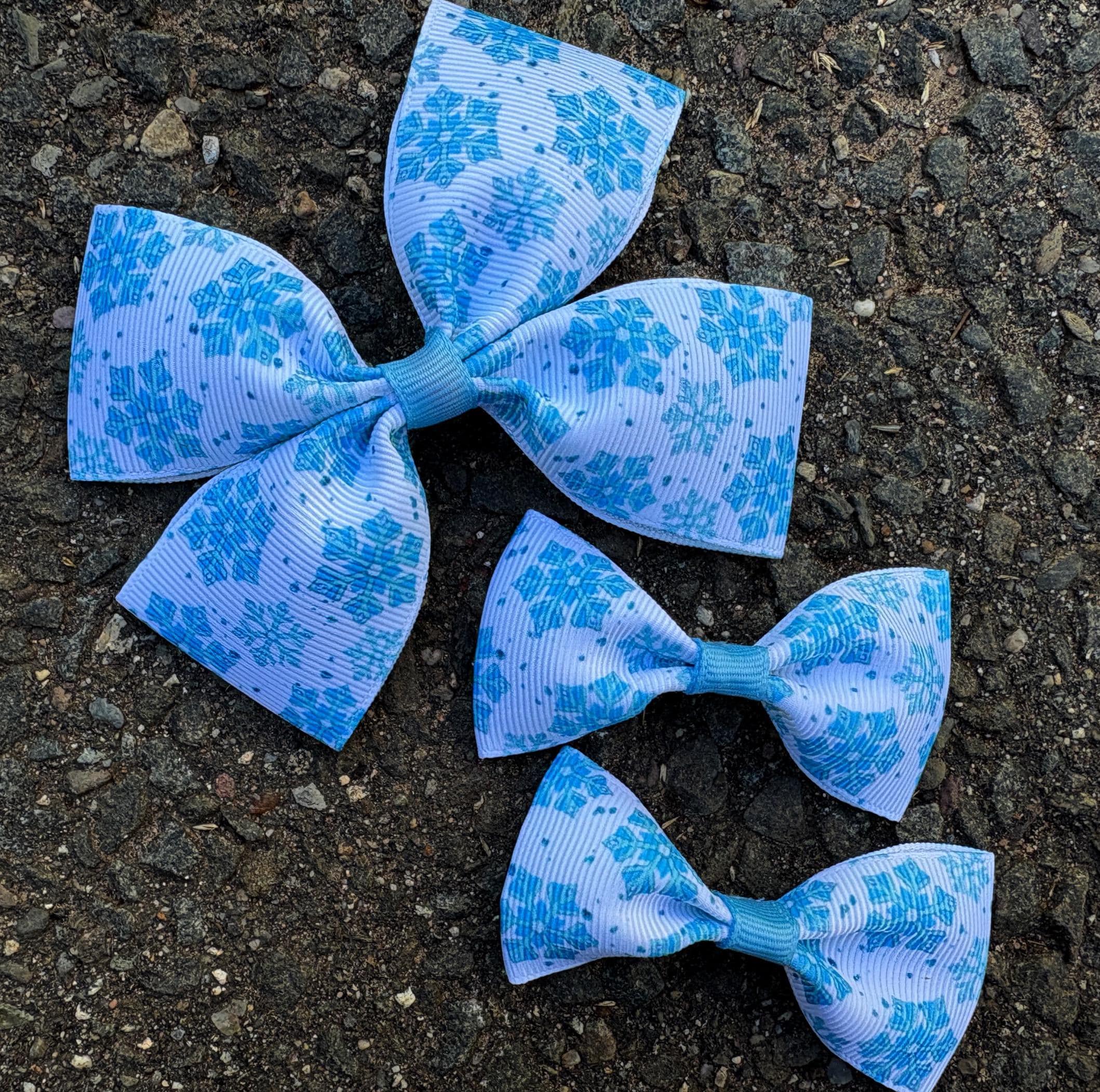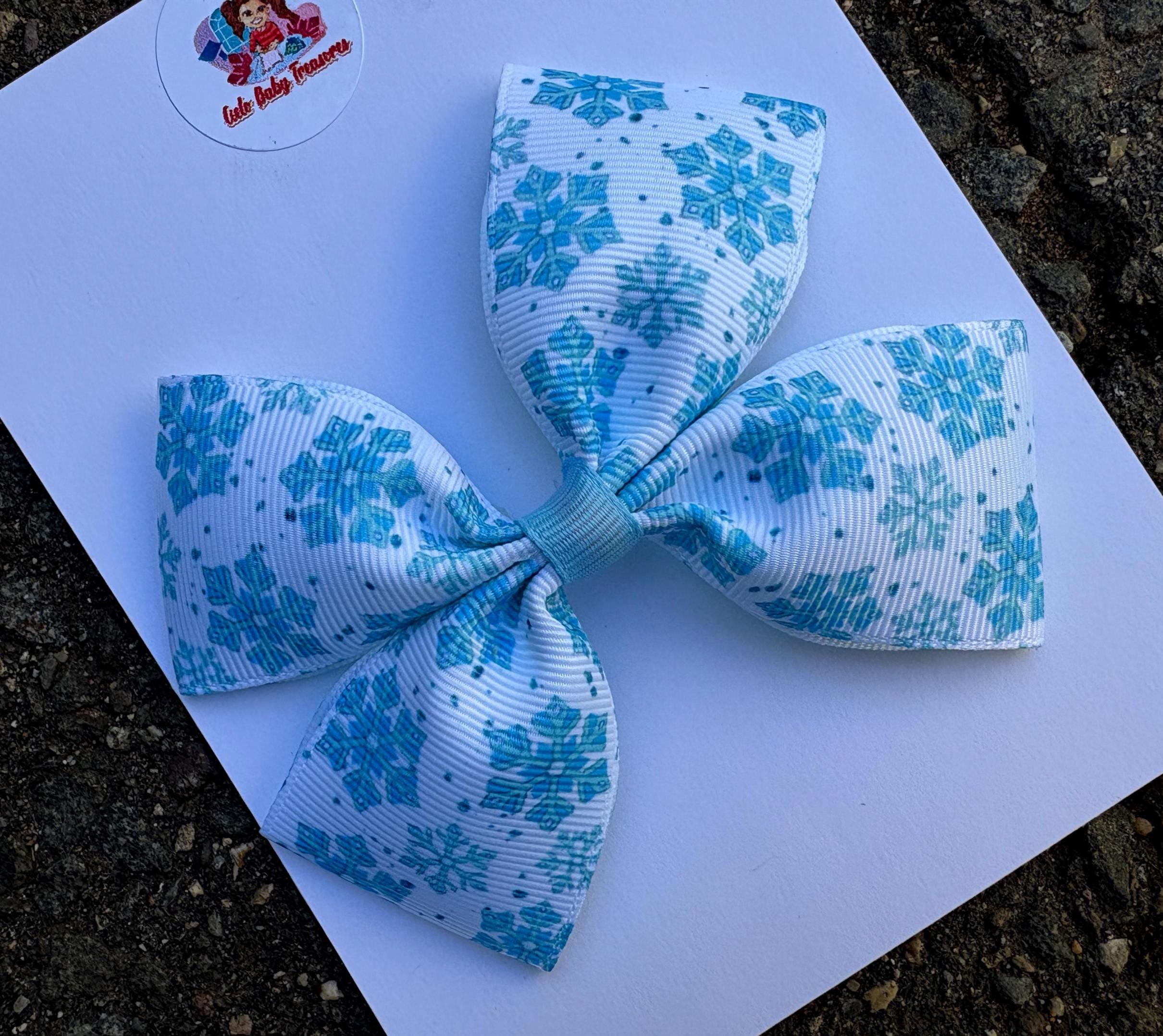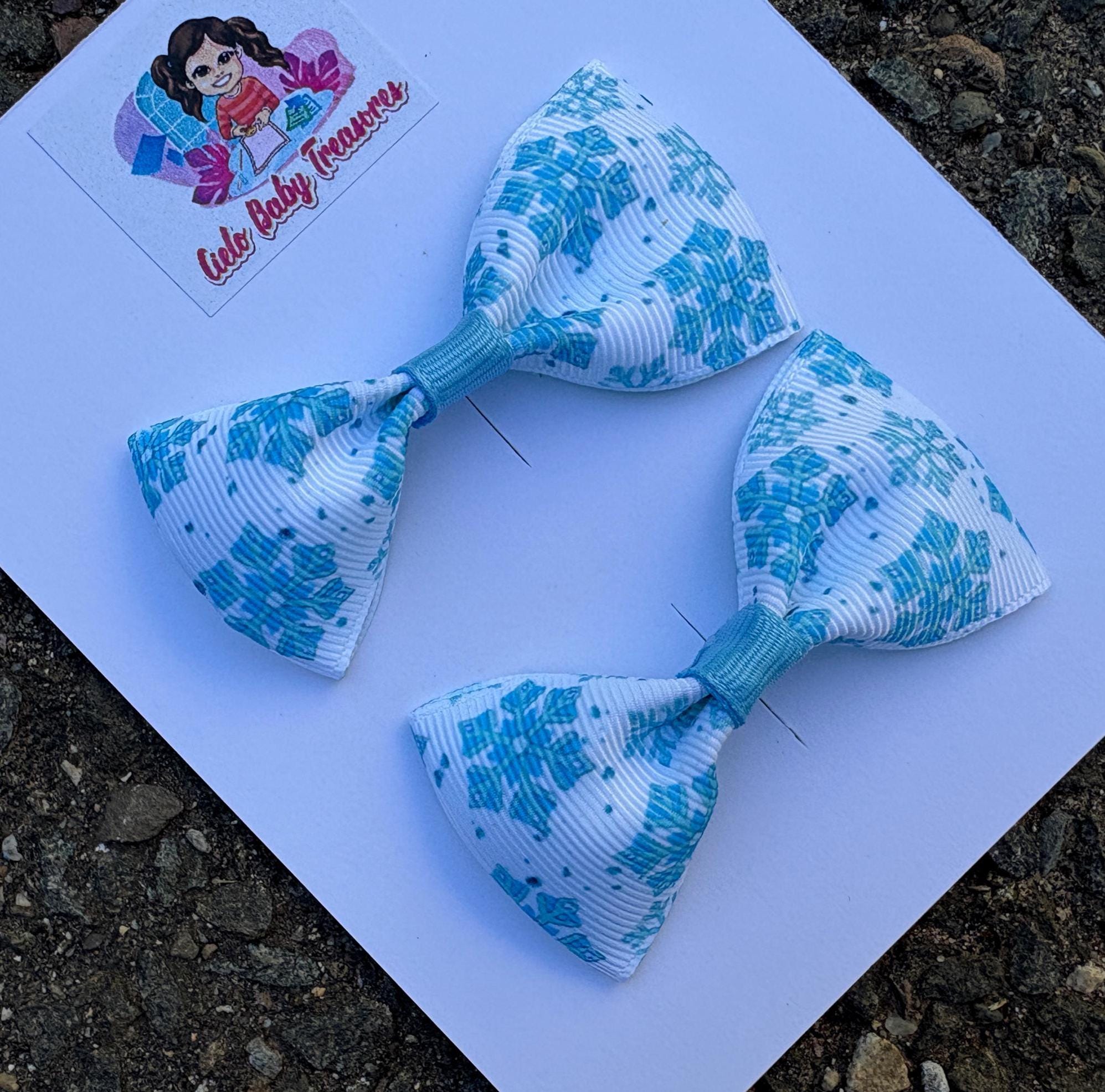 White and Blue-Snowflake hair bows/Christmas Bow Ices/Frozen Snowflake/Winter Hair Bow/Wonderland Double Stacked Glitter Bow Sparkle