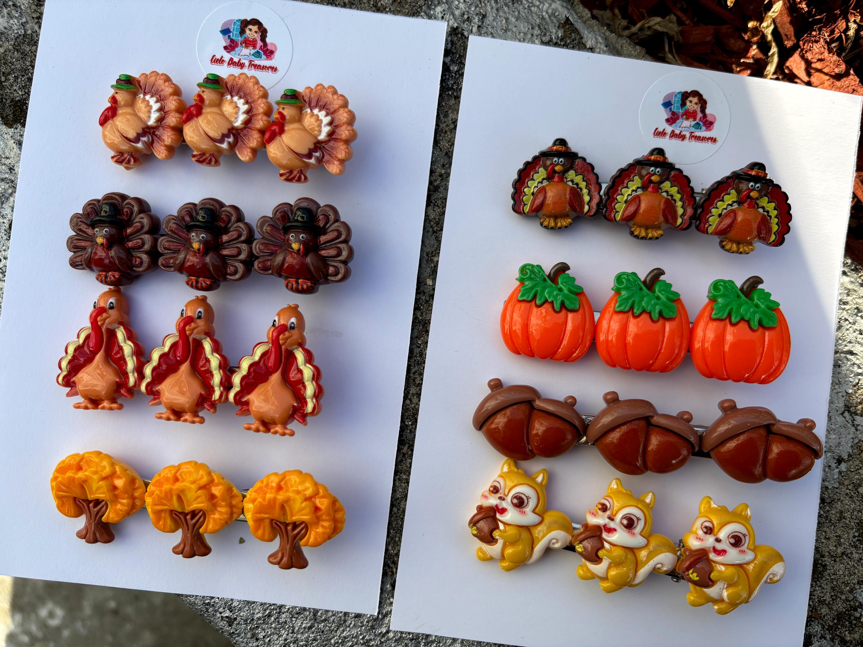 Set of 2 Autumn, Leaf falls, Pumpkin, Squirrel, Thanksgiving Turkey Hair Clips, Fall