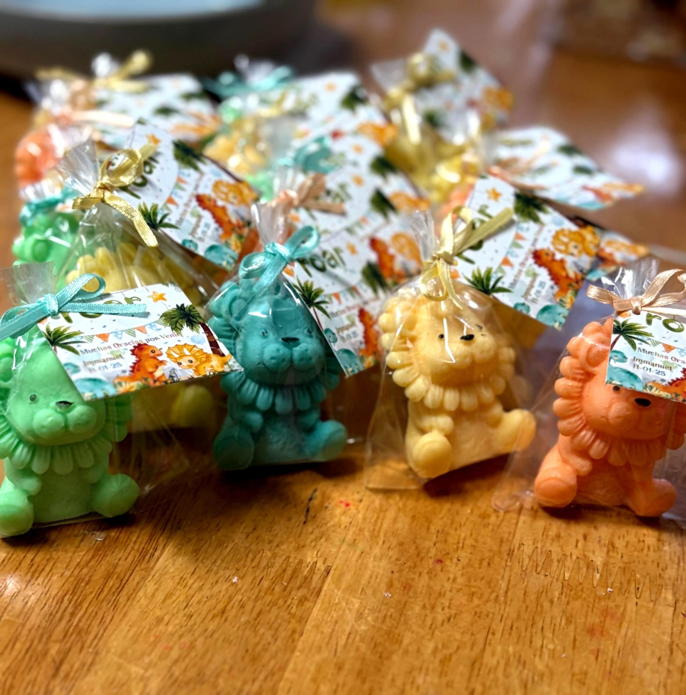 🦕 Mini lion-shaped candles in pastel colors, hand-poured and unscented.