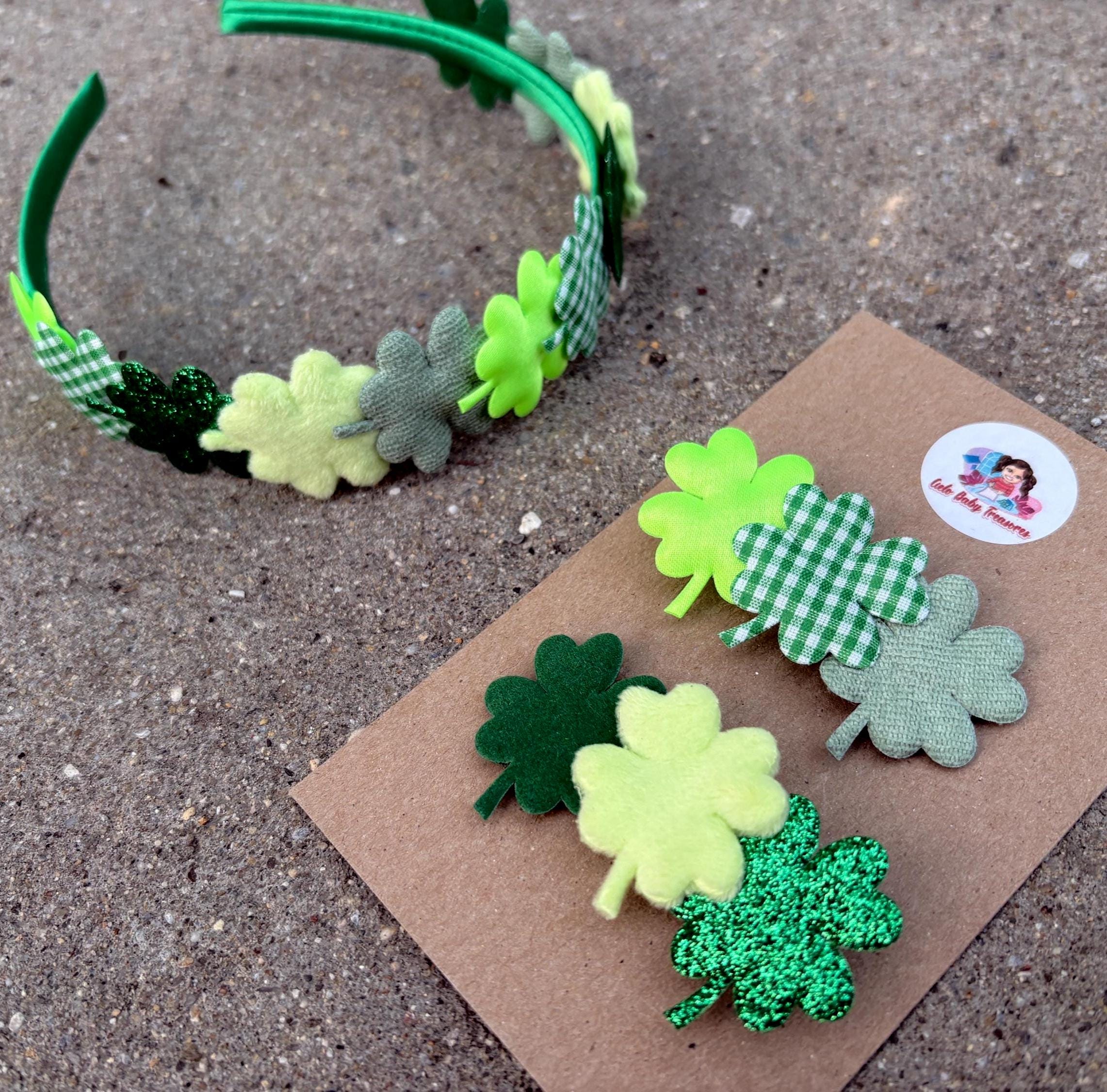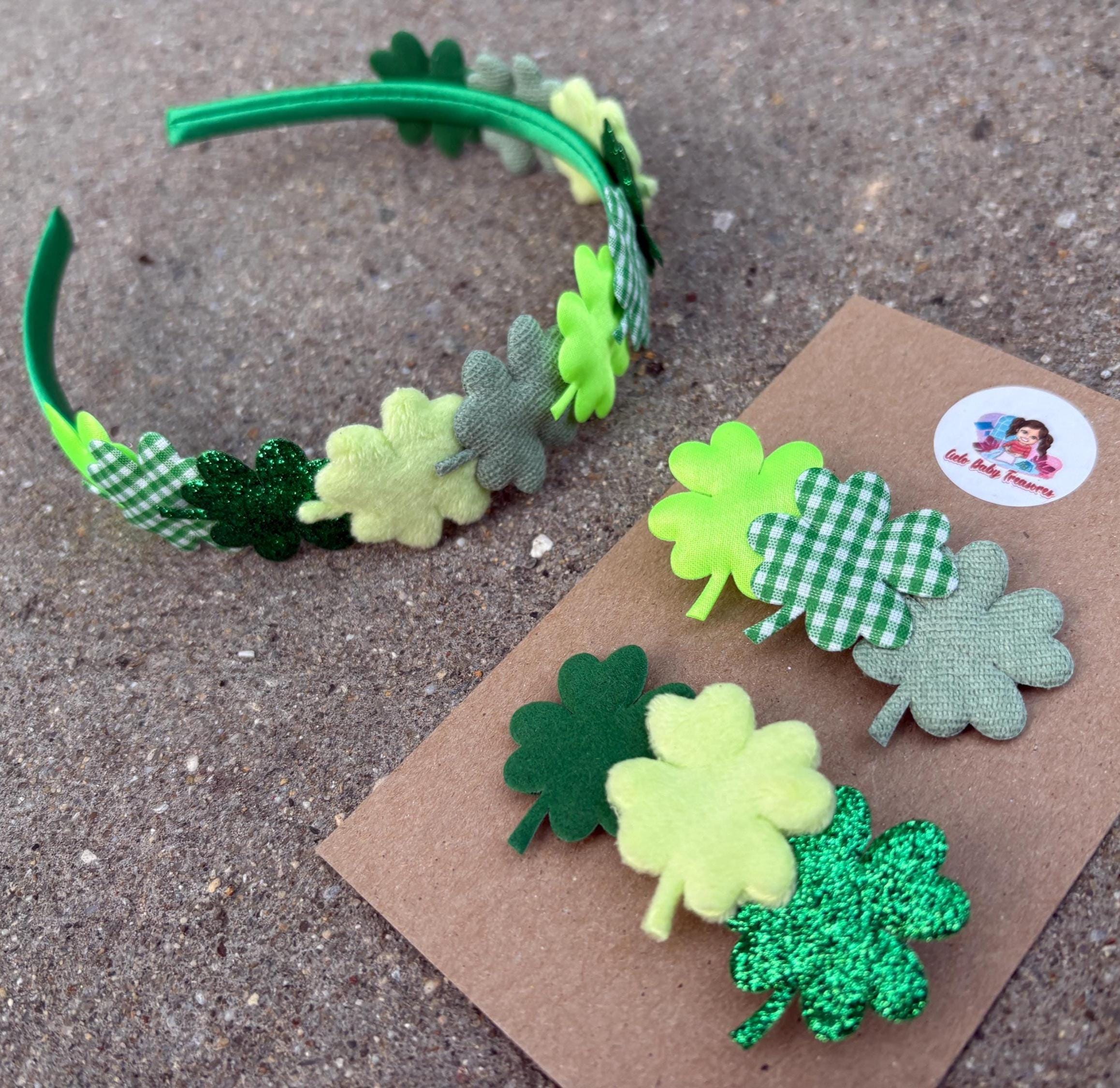 St. Patrick's Day Clover Headband and Hair Clips Set β Green Shamrock Accessories