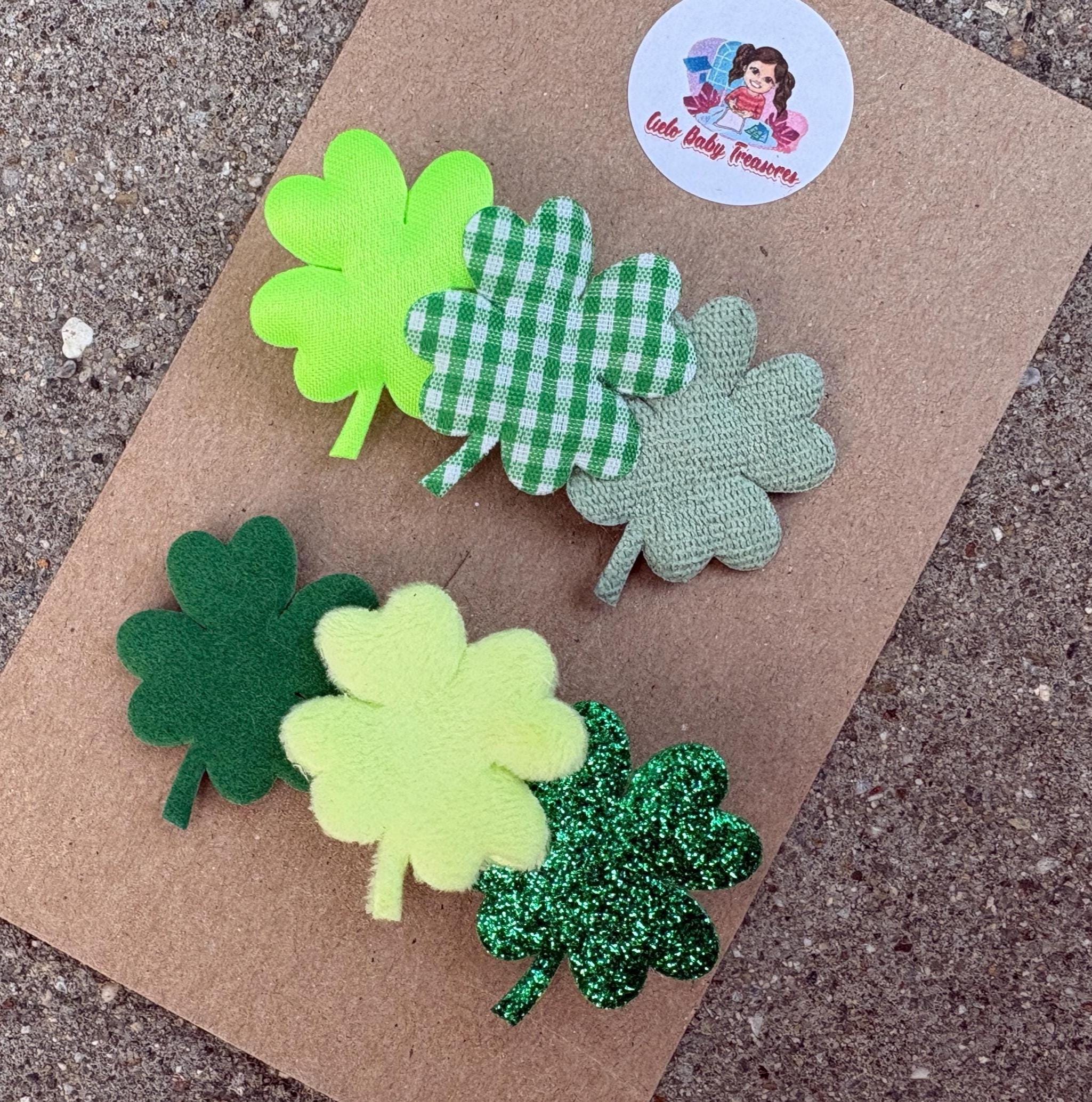 Shamrock hair clip St Patrickβs Day Baby Clip-Three Leaf Clover Stud Clip-Clips Sant Patrick- Accessories for Baby Girls Green.