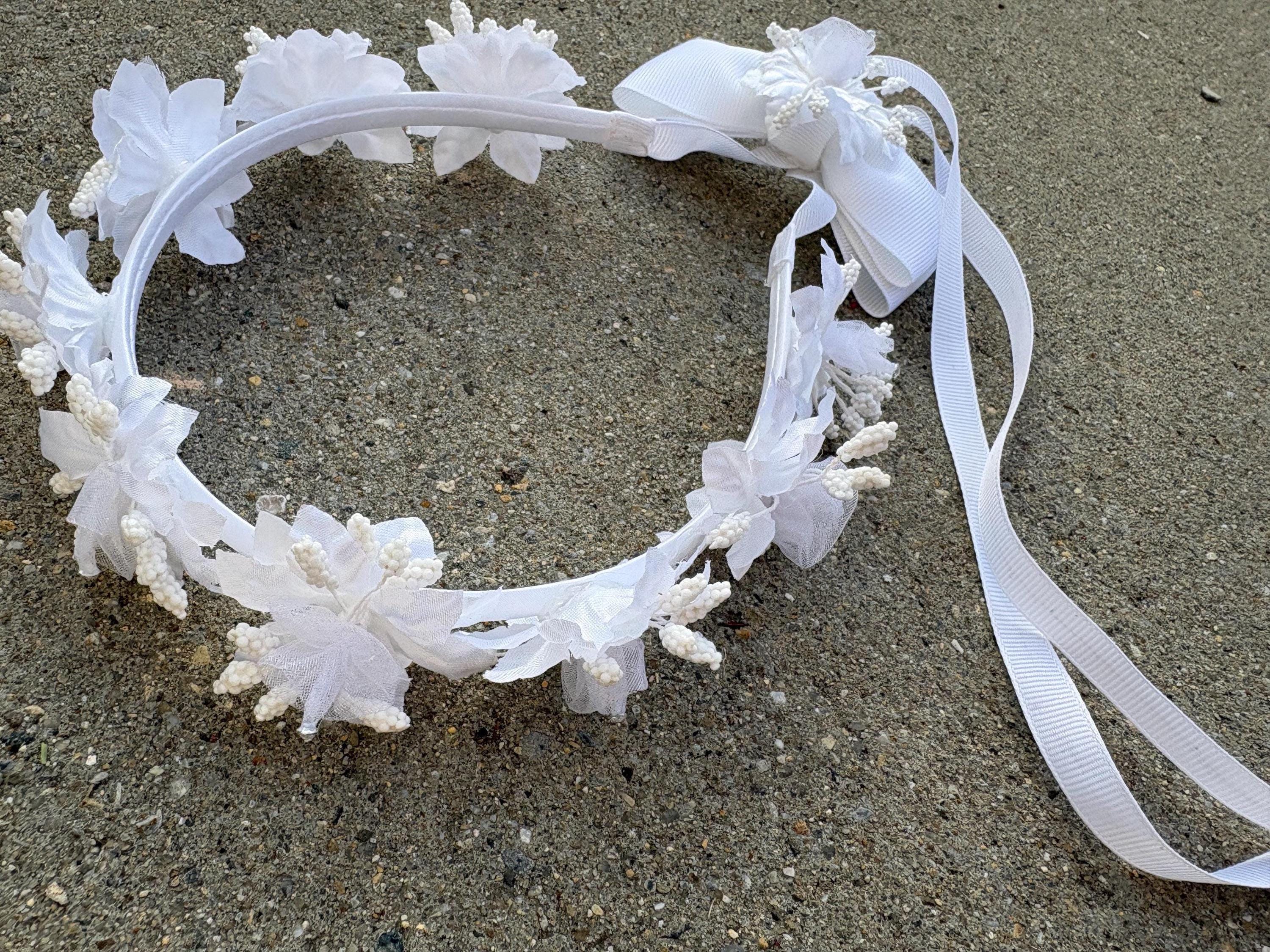 ✝ White Daisy/Rose Flower Girl Wreath, Baptism Girl Ribbon Bow, Bracelet or Hair Clip, Headpiece, First Communion Hair Accessory, Wedding Ceremony Accessories-Handmade christening, Headband, gold Headband, hairpins, hair accessories, gifts for her, White Pearl Headband, Wedding Vintage Hair, Elegant Headband, Cute Headband, Wedding Pearl, Nice hair accessory, Hen Bridal Party Headband, Pearl Elegant Headband, Hard Headband, Summer Headband.
