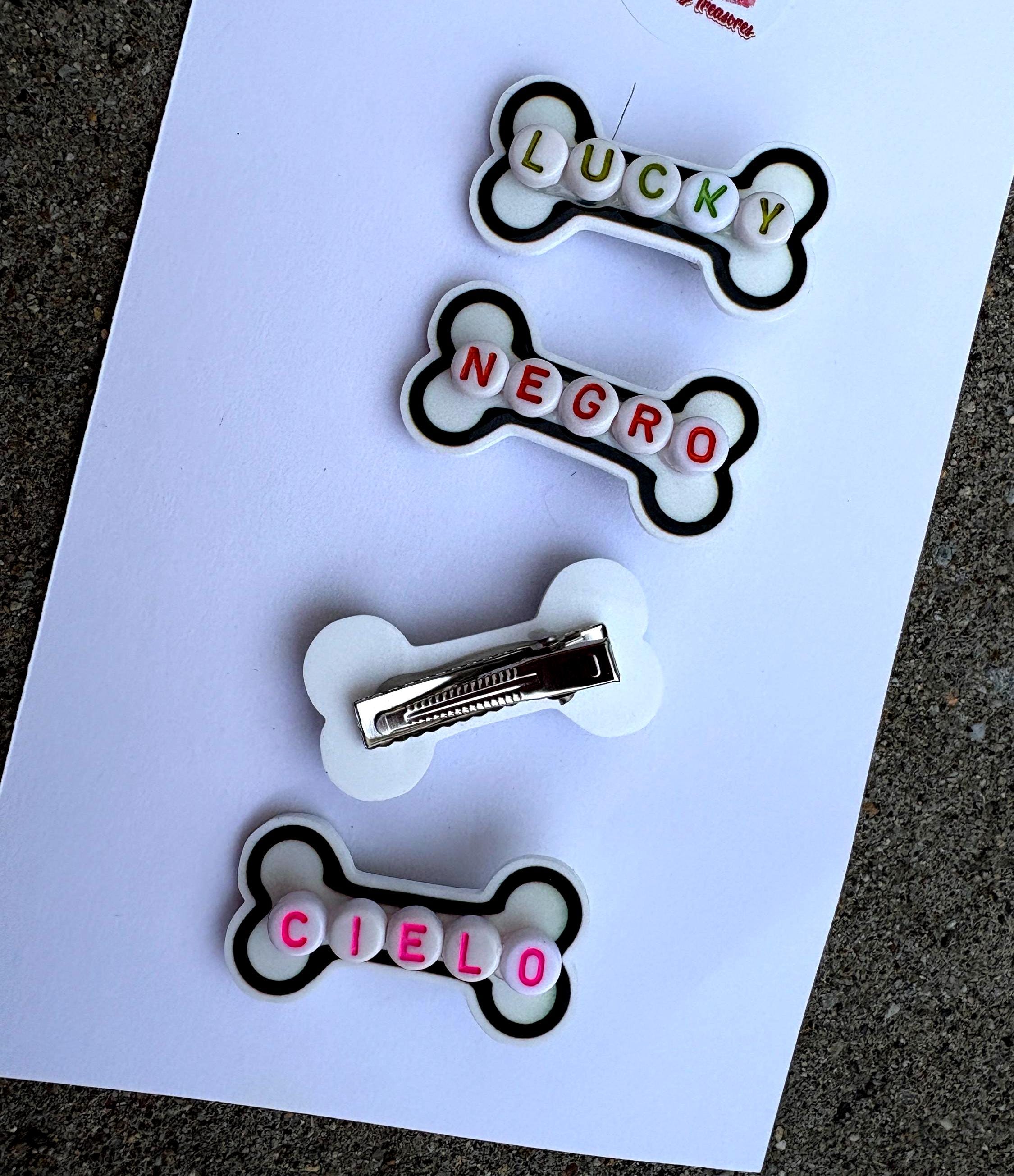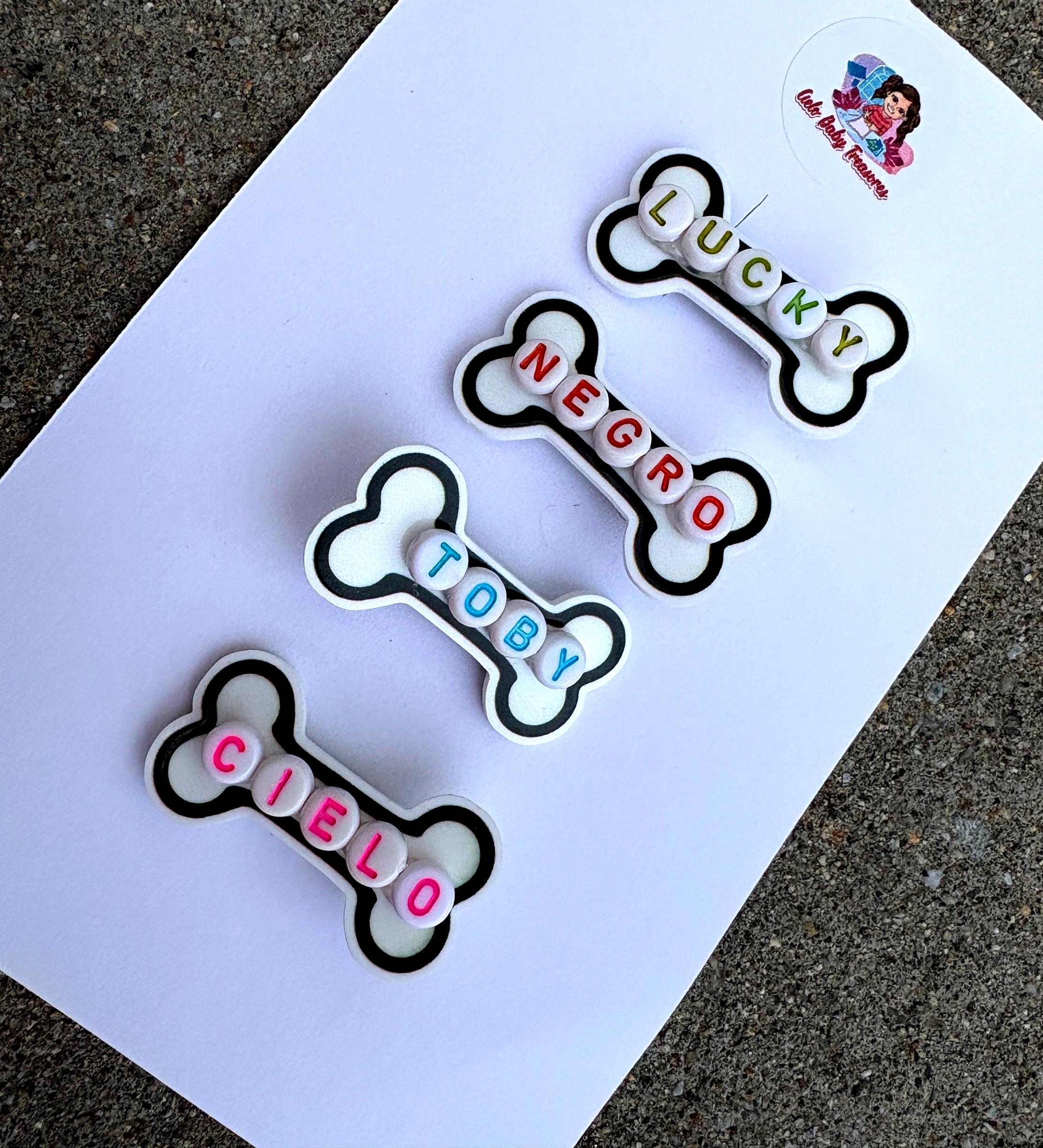 Small White Bone-shaped hair clip with name-Personalized Dog Bow Barrette-Adorable Puppy