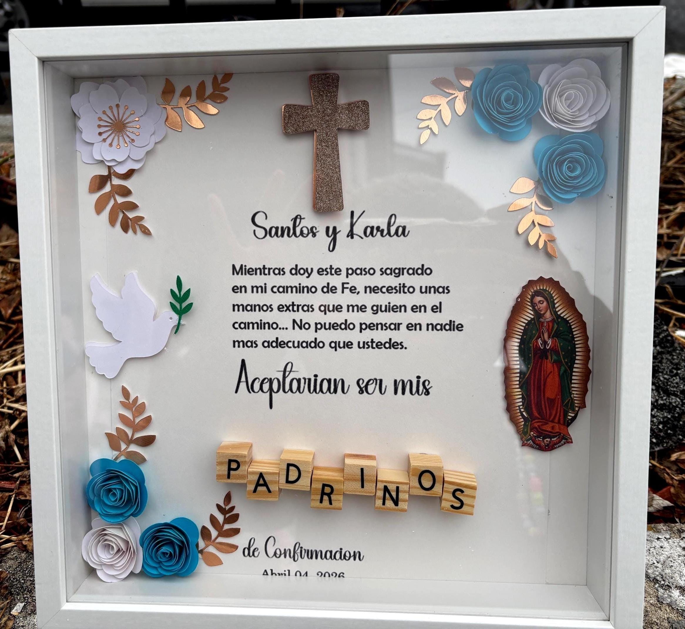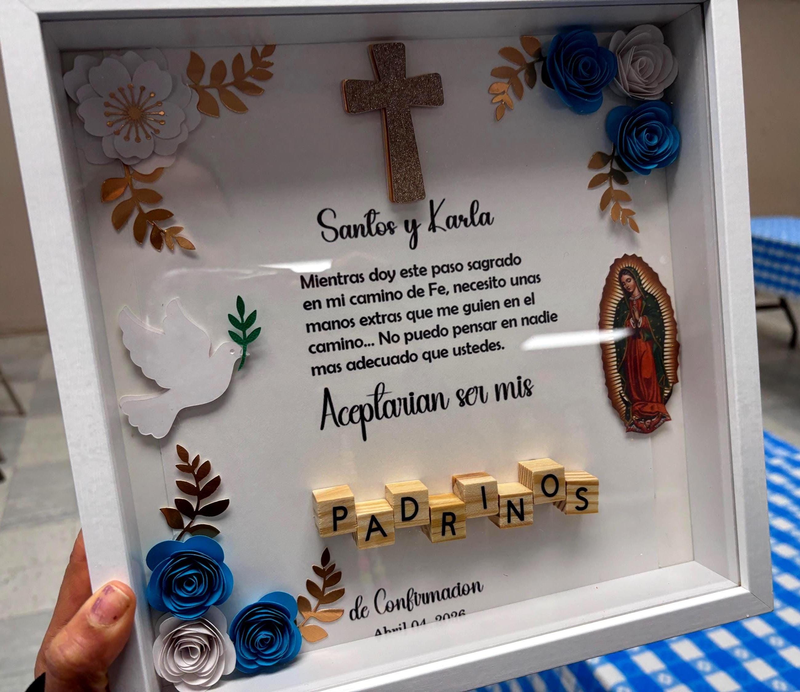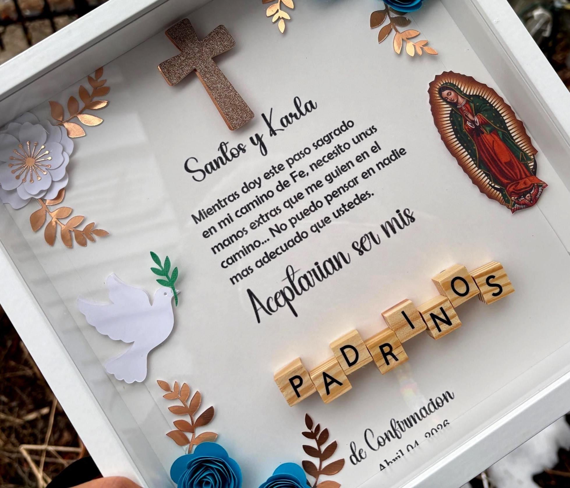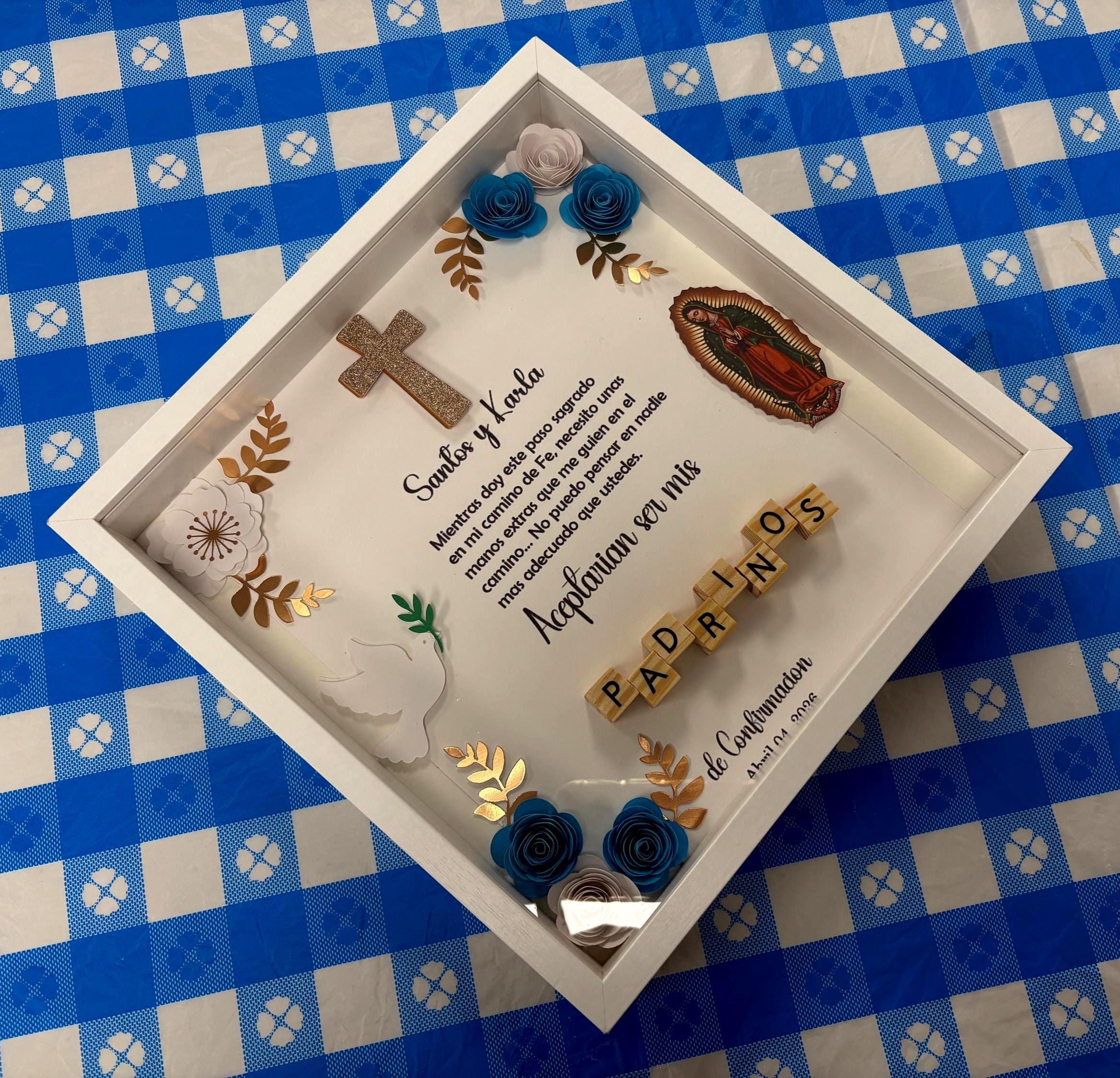 Godparents Proposal Shadow Box: Baptism Gift with Paper Flowers, Mi Bautizo, Propuesta
