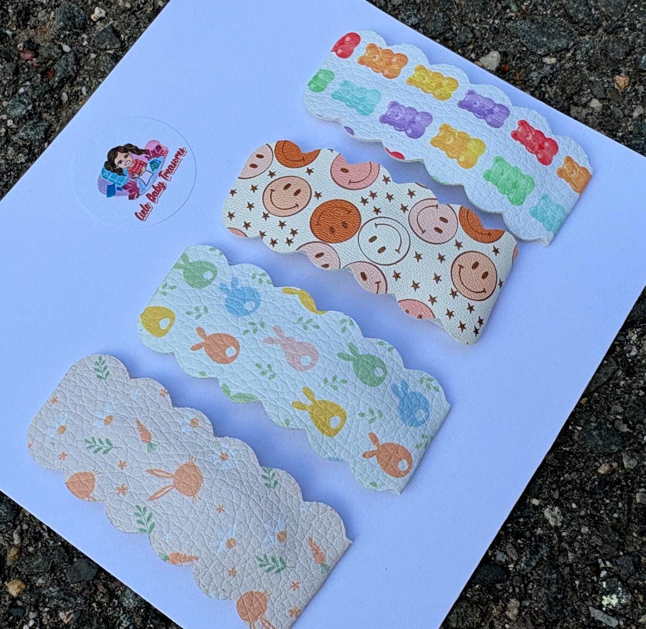 Set of 4 Easter Snap Clips – Bunny, Gummy Bear, Smiley Face Hair Accessories
