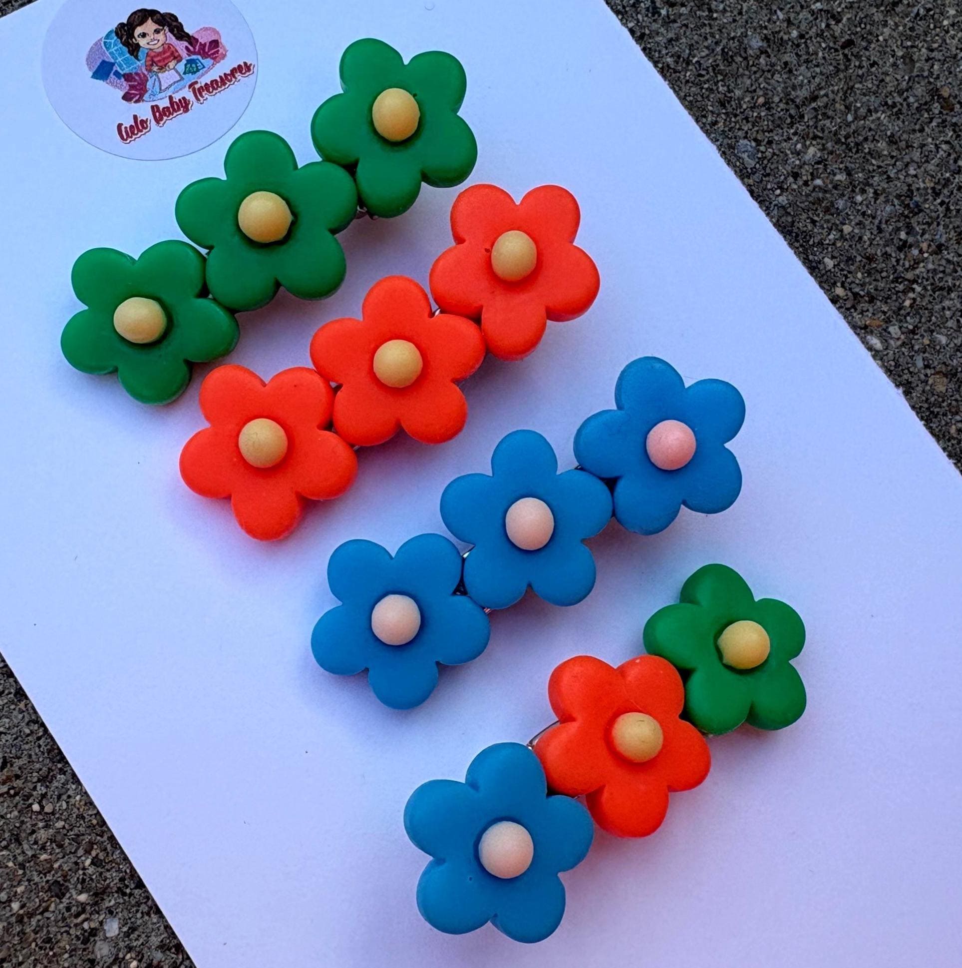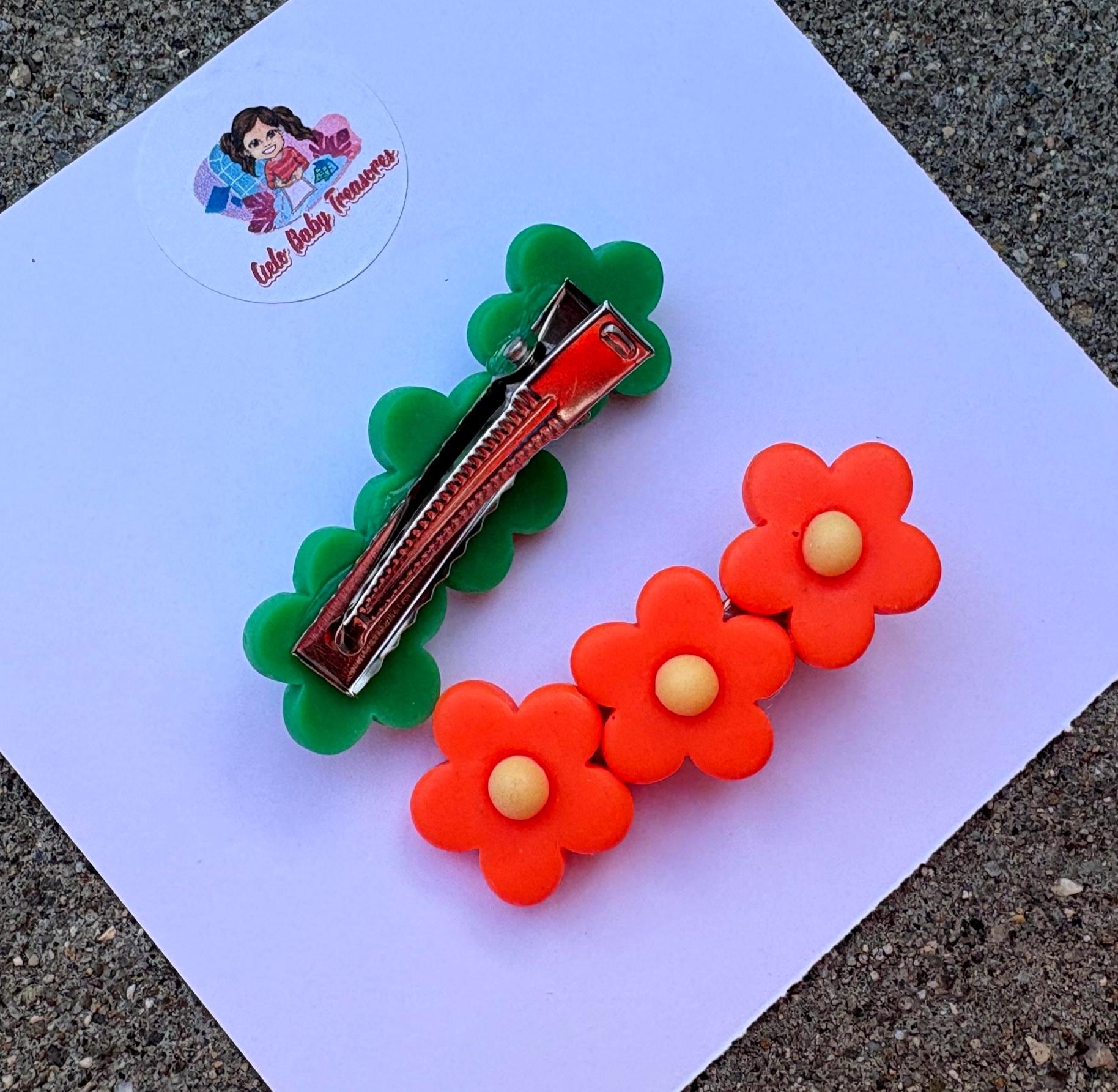 Resin Daisy Hair Clips: Green, Orange & Blue Flowers Clip- Summer Hair Accessories