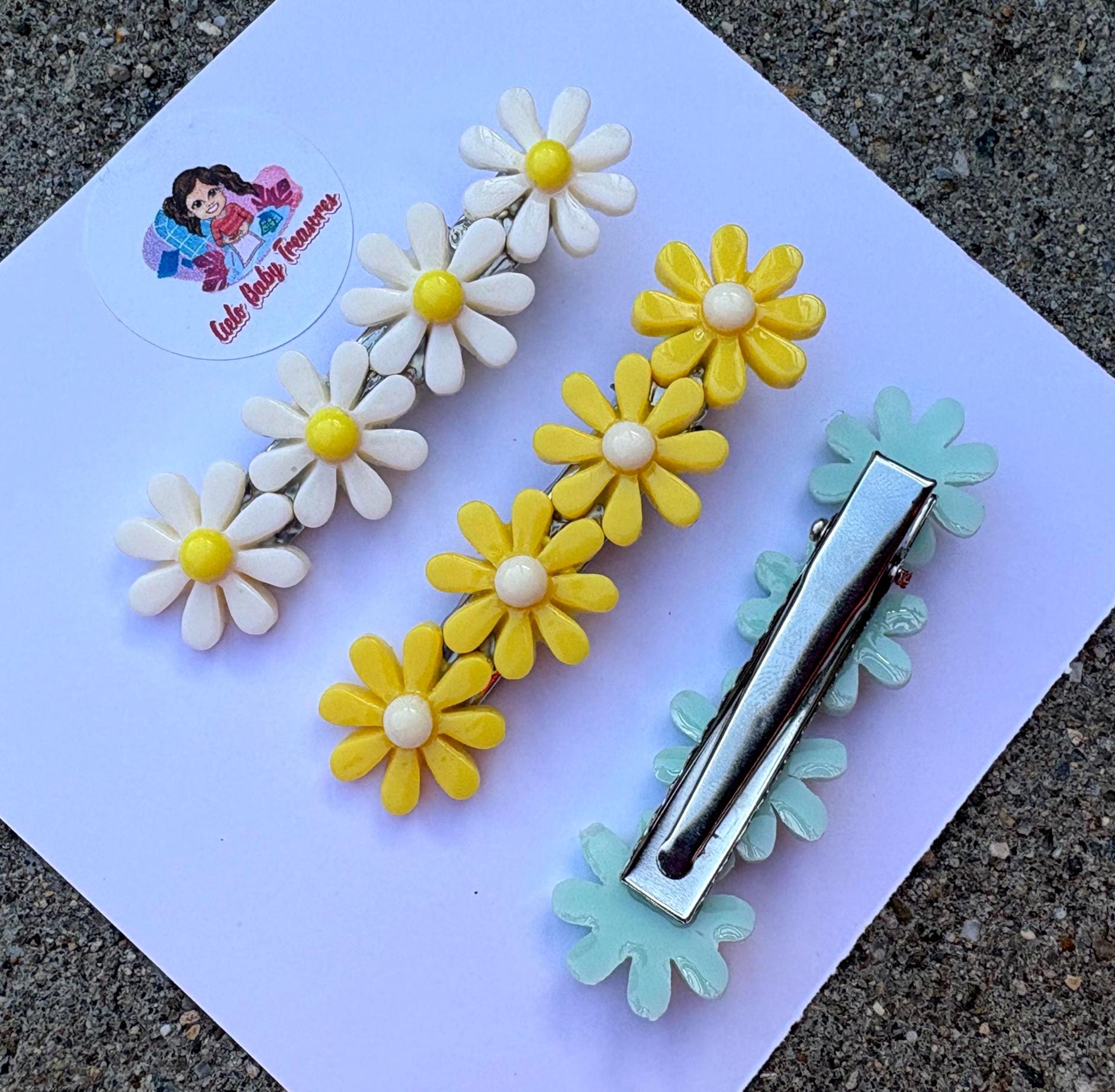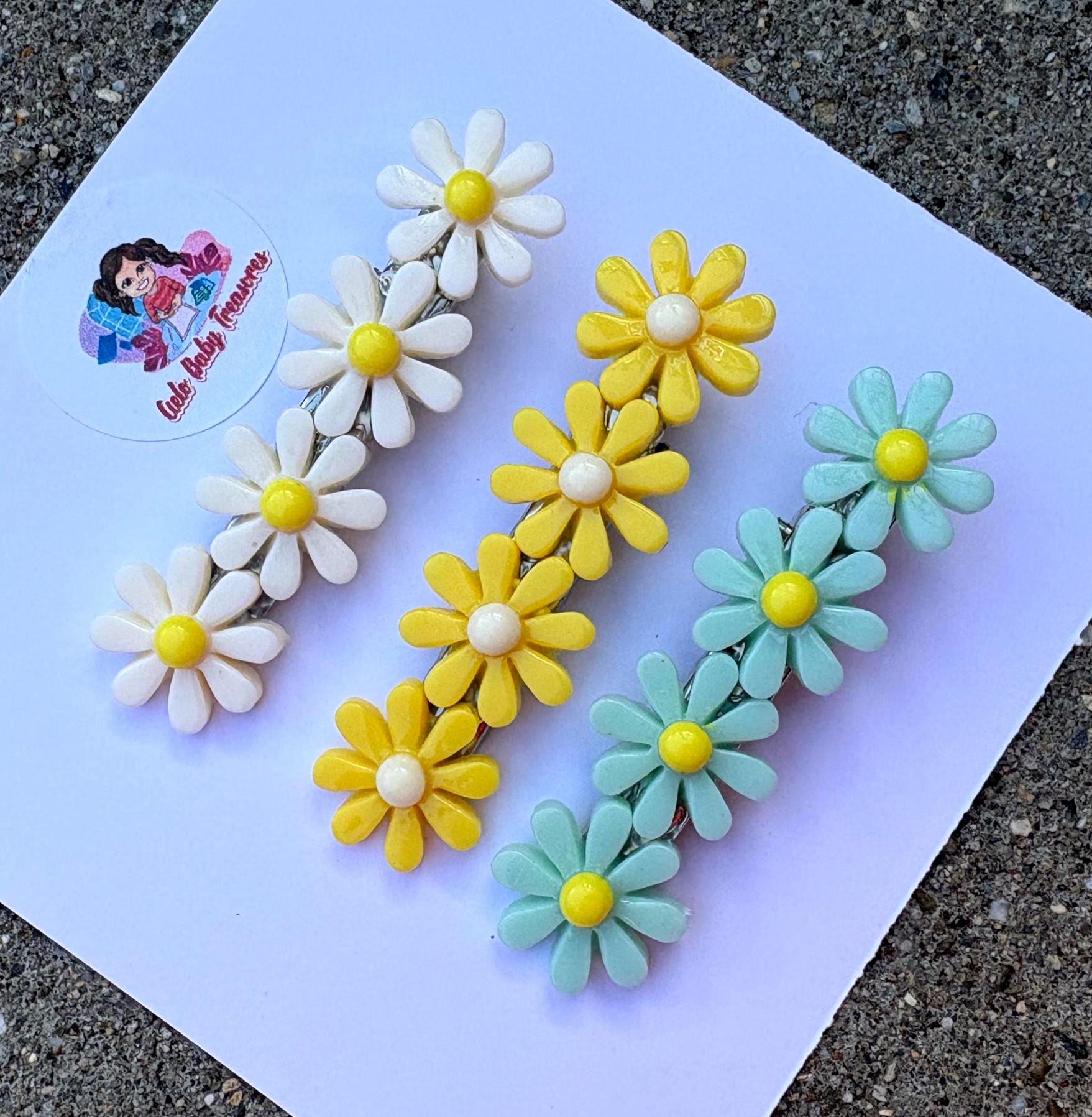 Resin Daisy Hair Clips: White, Yellow & Blue Flowers Clip- Summer Hair Accessories