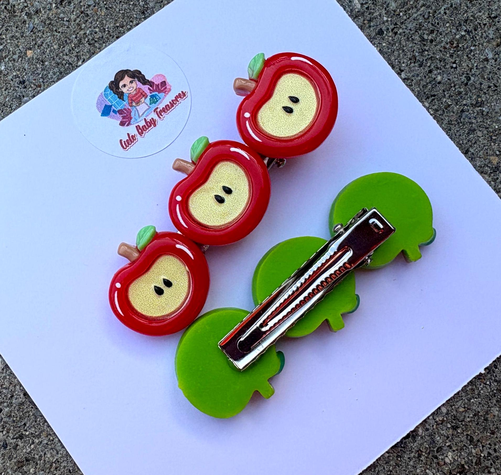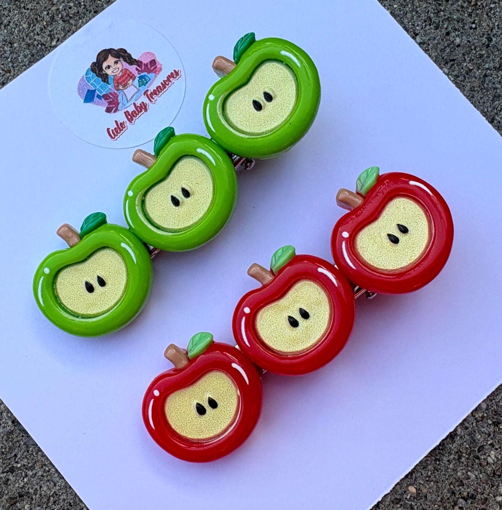 🌼 Cute Apple Hair Clips/ Green and Red Apple Summer/Her gift/Toddler/Girls hair accessories/Daisy Minimalist Flowers hair bow/Hair Accessories for Her, Hair Bow/Perfect Gift, Fruits First Birthday Baby Girl, Resin Food Toddler Girls hair bows Mini bows/ Fruit, Twee, Whimsical, Teacher, Women & Girls Hair Accessory, Gifts for Her , Whimsical Hairclip