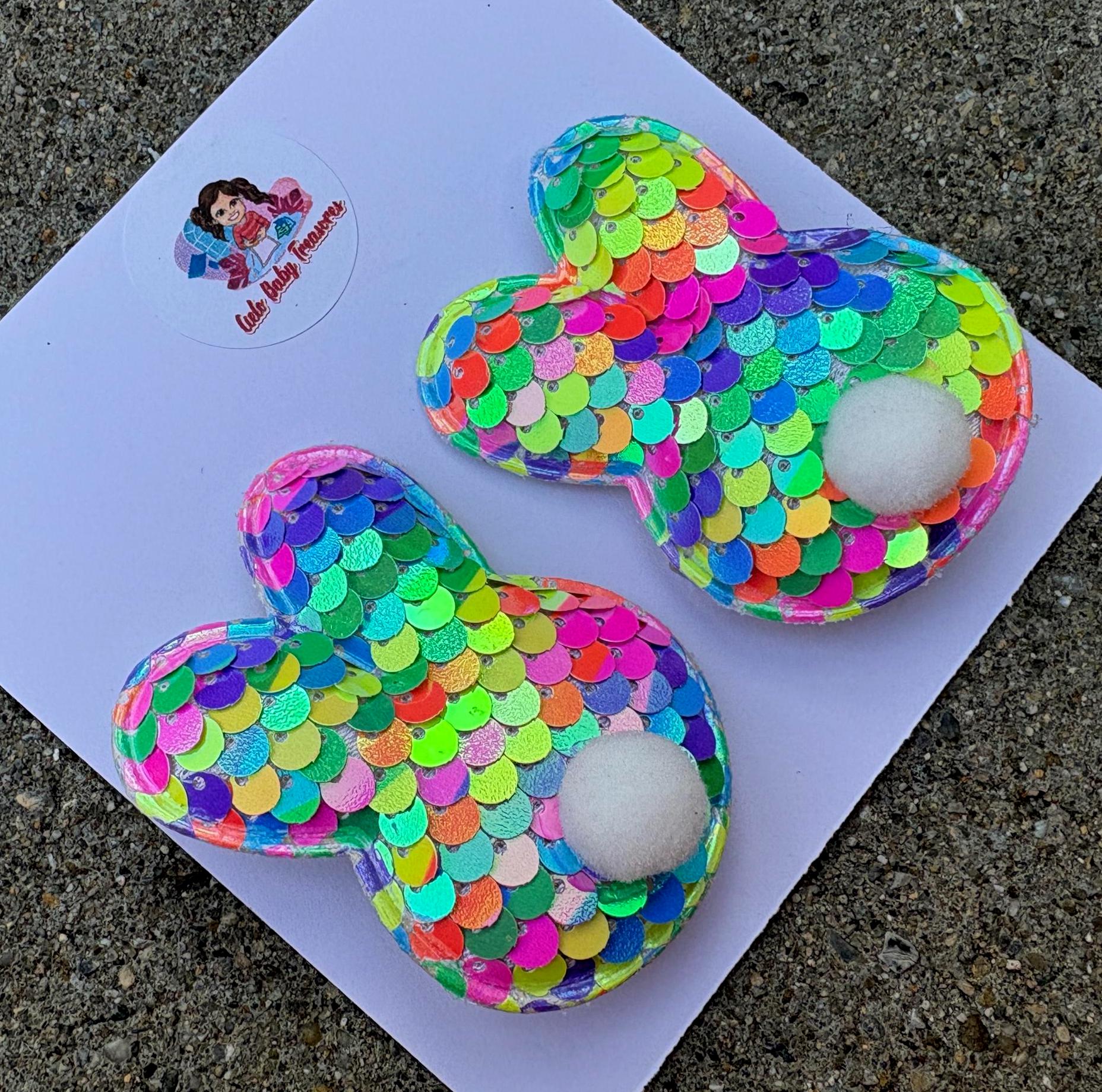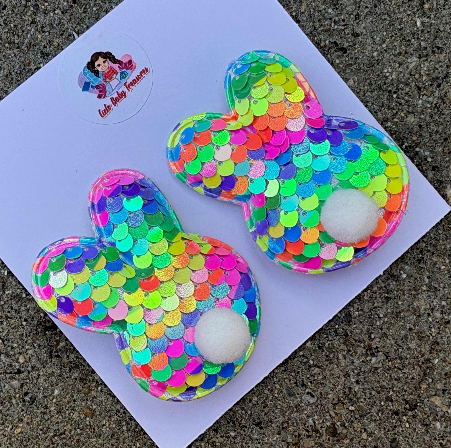 Set-(2) -Bunny Ears Hair Bow, Hair Clips Easter Bow, White Pink Sparkle, Sparkly Hair,T oddler Costume & Dress Up Accessories, Bunny Ears Bows.
