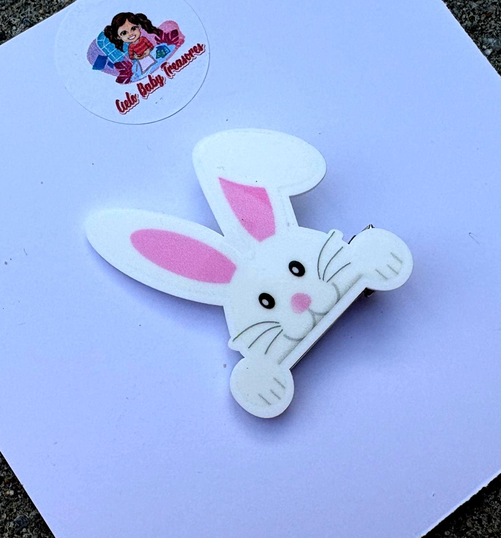 Classic bows, Bunny Glitter Canvas, Easter, hair bows for Easter, White and Pink Hair Bows.
