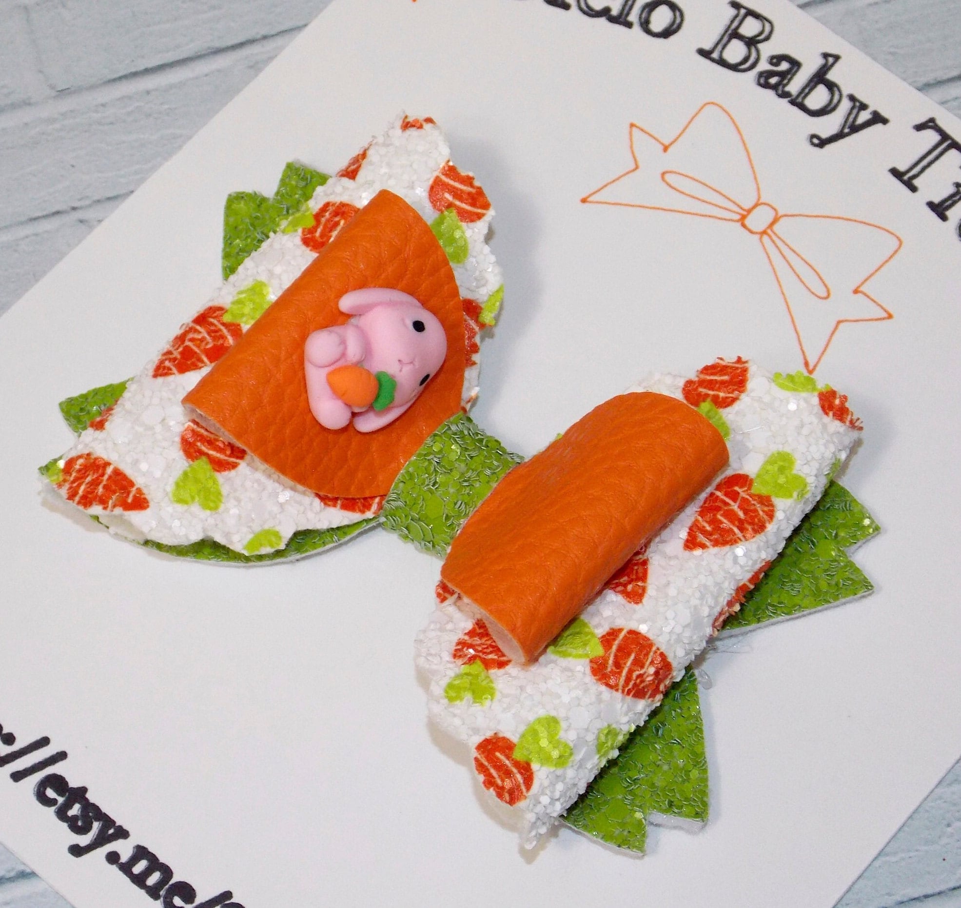 Easter Carrot Hair Bow Clip with Bunny Charm – Toddler Spring Accessory