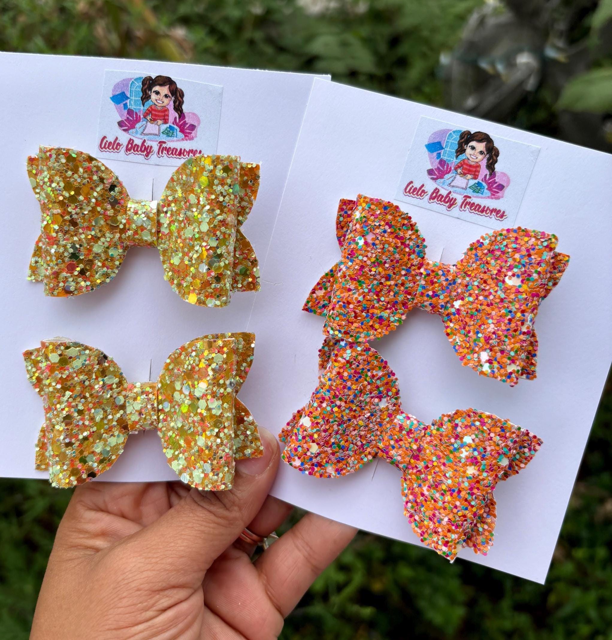 Fall Glitter Pigtail Hair Bows-Halloween Glitter Bows-Orange Bow-Bows Set-Autumn Bows-Toddler Bows-Thanksgiving Baby Girls Bow-Pumpkin Pie.