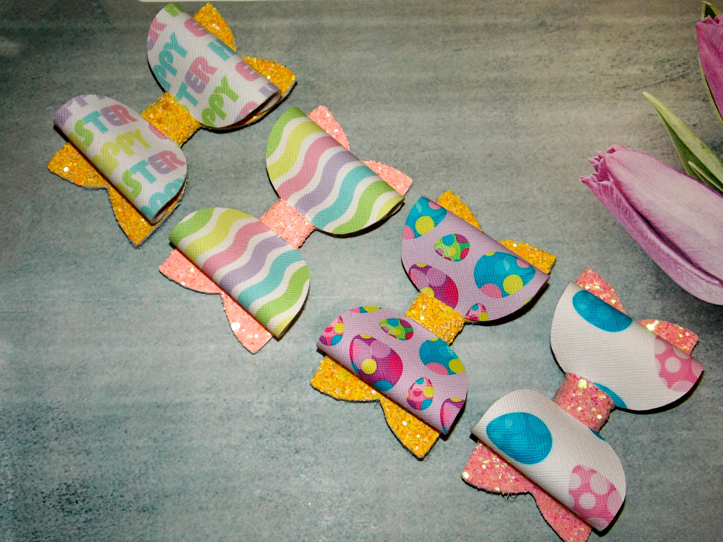 Bunny Bows, Easter Glitter Hair Bows White and Pink, Double Stacked Glitter Bow Sparkle, Bunny Ears bows Girls bows.