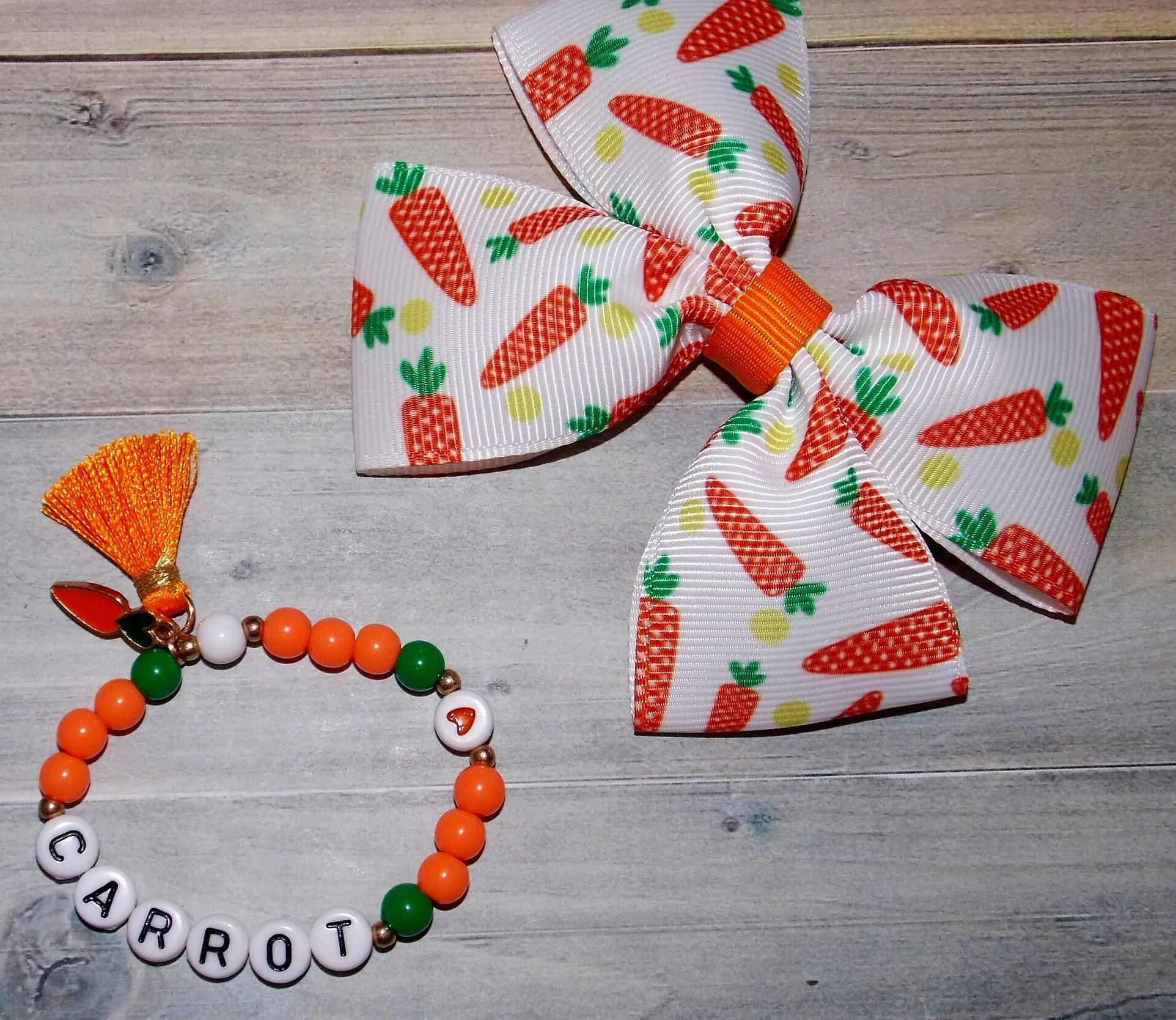 Carrots Personalized Bracelet and Hair bow-Easter Gift For Baby Girls-Orange and Green Hair Bow-Easter Basket Stuffer-Eater Bow-Birthday Bow