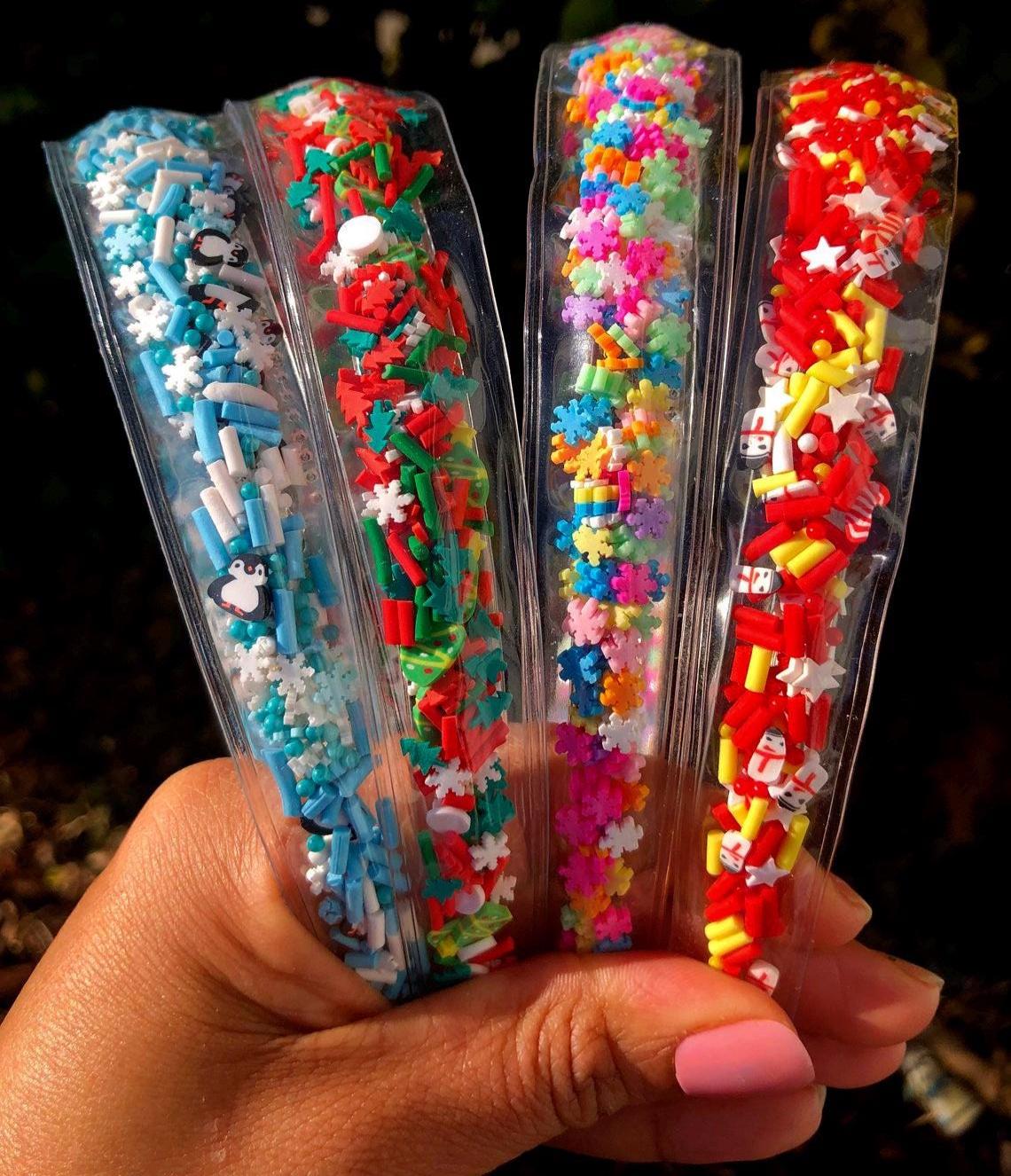 Large Shaker Snap Clips Halloween-Confetti Bats Clip-Shaker Candy Corn Clip-Stocking stuffer Clip-Transparent Quicksand Clip-Sprinkles-Stars.